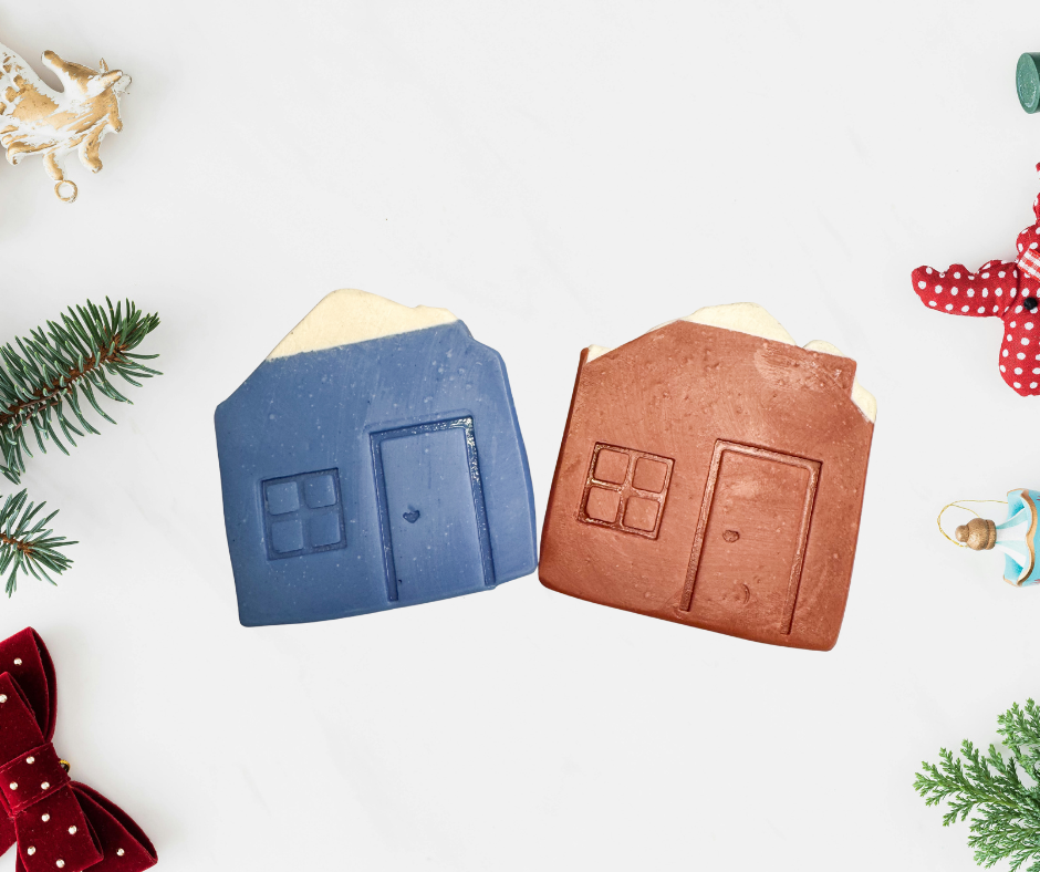 Each bar is molded into a cozy house silhouette — one cool, crisp, and woodsy; the other playful, sweet, and seasonally bright.