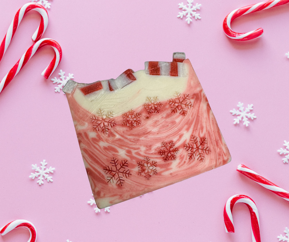 Wrap yourself in cozy warmth with Warm in December, a handcrafted soap bar inspired by the simple joy of candy canes and hot cocoa. This bar blends the cool lift of crushed peppermint and fresh mint leaves with the rich decadence of dark and white chocolate. Cocoa nibs, confectionery sugar, and vanilla bean layer in sweetness, creating a scent that feels both nostalgic and indulgent.